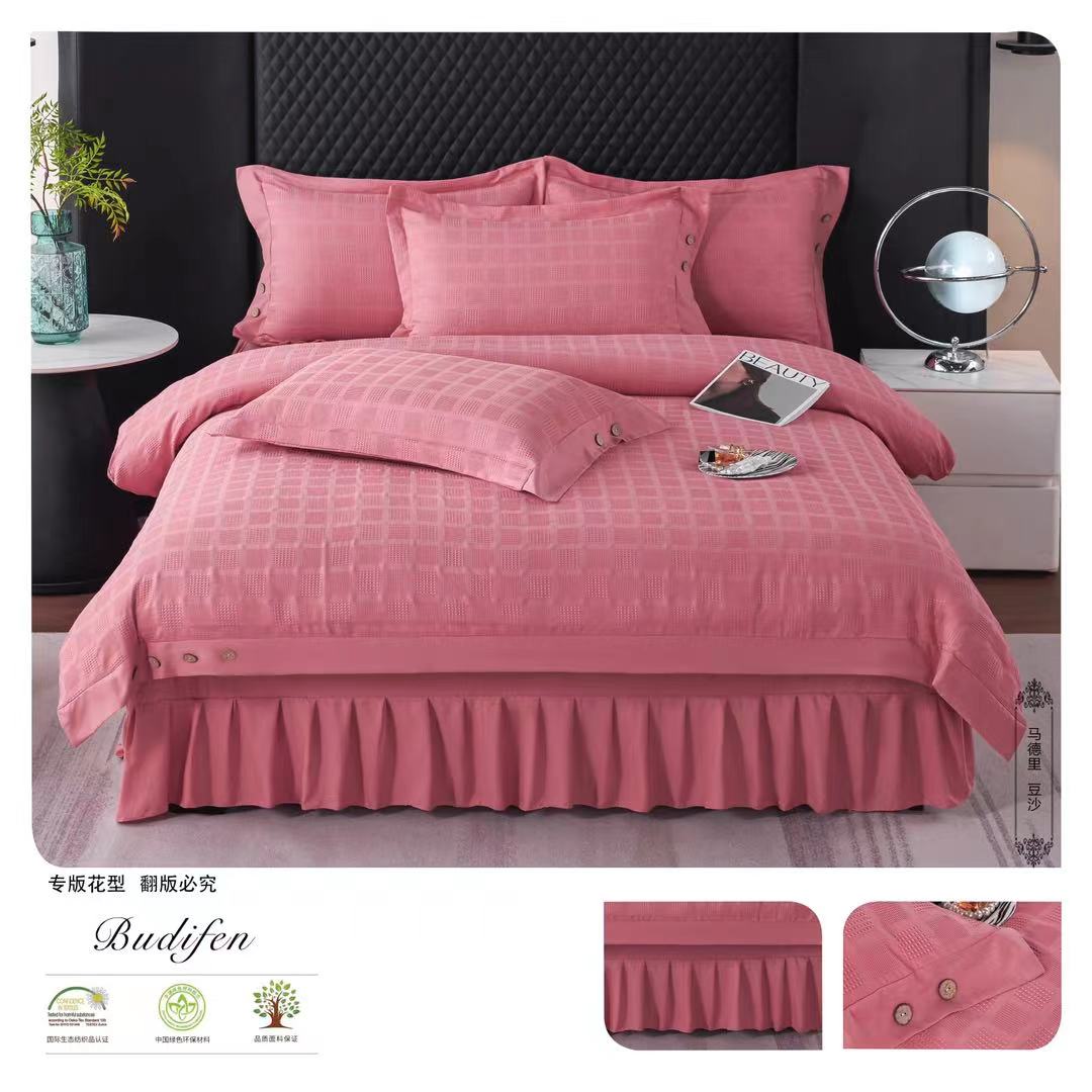 2023 Days Silk Cotton Solid Color Jacquard Four-Piece Autumn And Winter Warm Cotton Set Silky Smooth Skin Four-Piece Bed Skirt Bedding